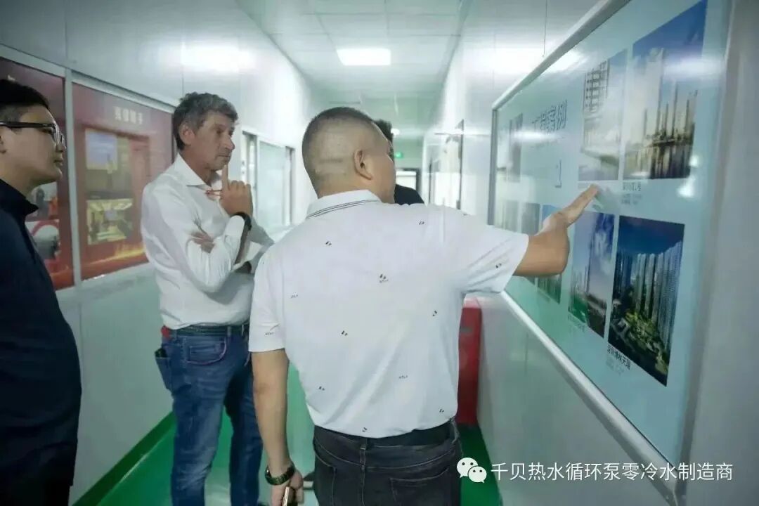 千貝科技在民用建筑水循環行業積累了眾多房地產項目熱水循環系統的工程案例,在家用生活熱水循環行業獲得齊全贊譽。千貝科技董事長劉偉先生向Giancarlo Roggiolani先生介紹鷹游熱水循環系統在高級樓盤工程配套中所取得的成績。